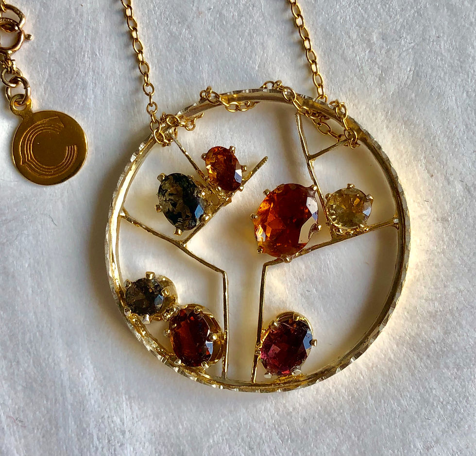 Jusqu’à quatre billes de pierres ornementales et fines qui s’auréolent d’une couronne de pierres fines ou précieuses. Ces sphères semblent en suspension, protégées par leurs remparts.
